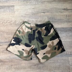 Adidas 3 stripe Camo 7” inseam shorts.