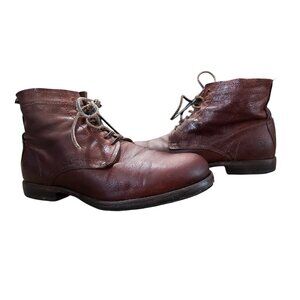 FRYE Leather Combat Boots Mens 8.5 Brown Lace Up Distressed Office Classic Boho