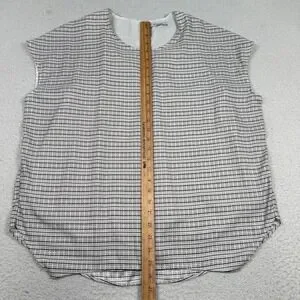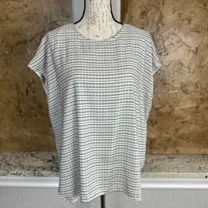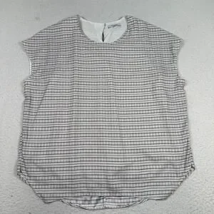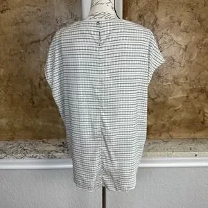 MM LaFleur Blouse Top Women Large Stripe Micro Check Minimal Black White
