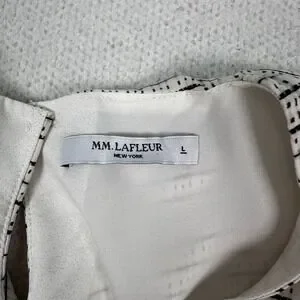 MM LaFleur New York Blouse Top Women Large Stripe Micro Check Minimal Black White