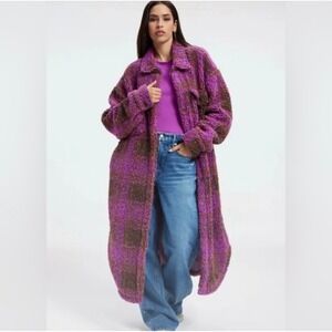 Good American Plaid Sherpa Long Shacket Coat NWT Oversized Cabincore Gorpcore