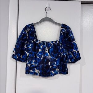 Open Edit Stylish Blue Floral Off-Shoulder Blouse