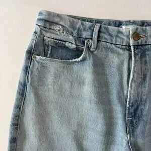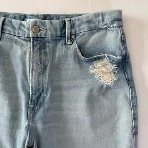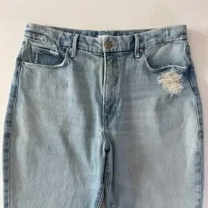 Good American Mom Jeans Women's Sz 10 / 30 High Waist Distressed Light Wash Blue