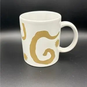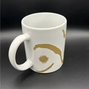 Vintage Oscar de la Renta Ceramic Mug Gold Swirl Sunburst Coffee Cup 12oz EUC