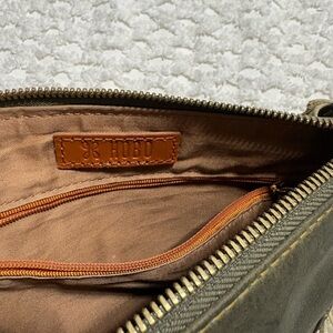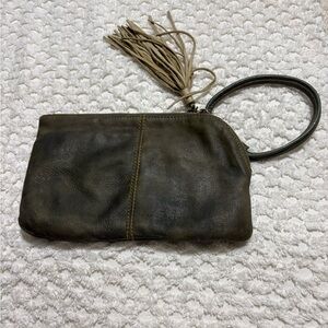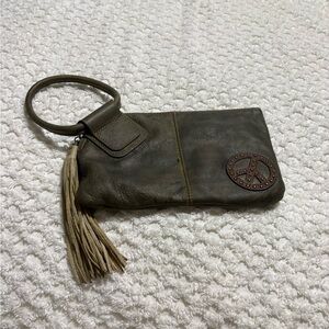 Hobo Rare Olive Green Leather Wristlet with Peace Sign
