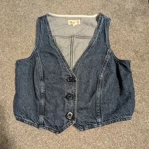 Beautiful cropped vest is perfect for layering or on its own! Just a tad snug on me now so looking to find it a new home! In good used condition, no flaws.