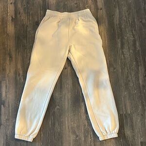 Elevate your casual wardrobe with these stylish cream joggers. Perfect for a relaxed day out. Pockets on both sides. Fits like size small.