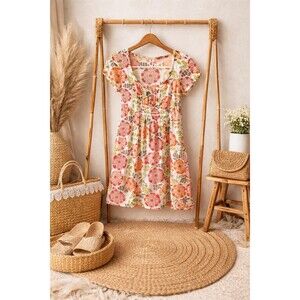 Soft, cheerful, and effortlessly wearable — this Boden floral dress feels like summer in fabric form. Covered in coral and orange blooms with leafy green accents on a creamy background, it’s the kind of piece you reach for on warm afternoons, weekend markets, or casual brunch dates.