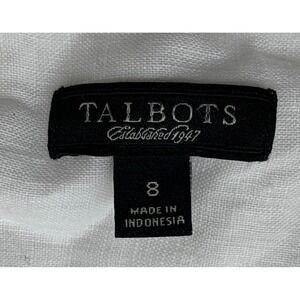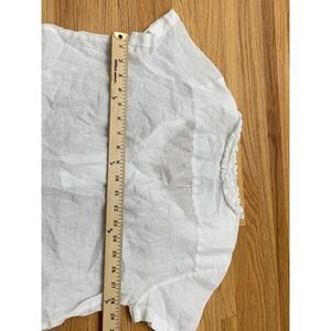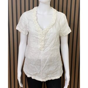 Talbots White 100% Linen Ruffle V-Neck Short Sleeve Blouse Top Size 8