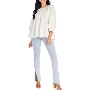 Mud pie Women's White Balloon Sleeve Blouse Bow Tie Back Size S