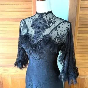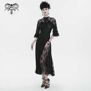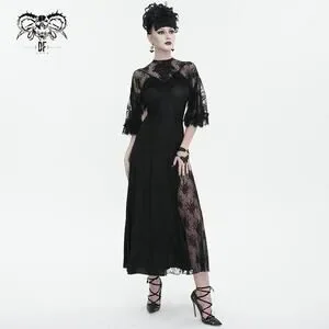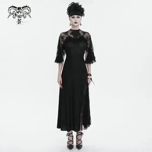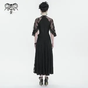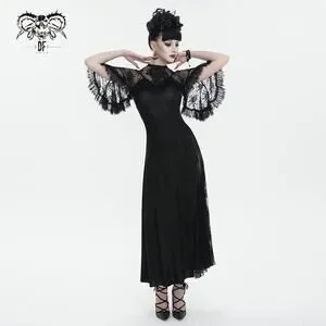 Devil Fashion Gothic Victorian 1930s 'Birds of a Feather' Lace Maxi Gown Dress