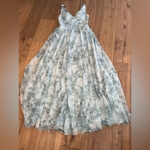 Jenny Yoo Collection Light Green Mist floral water color dress size 6