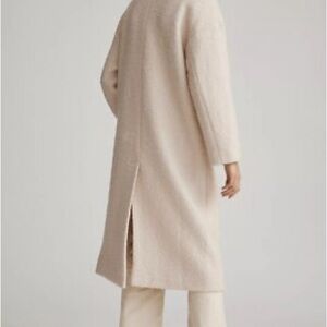 NWOT This Anthropologie Boucle Wool Cocoon Coat is a must-have for any fashion-forward woman. The coat is made of high-quality wool, ensuring warmth and comfort during the winter and fall seasons. The ivory color and solid pattern make it perfect for workwear, while its oversized style and double-breasted design give it a trendy edge.