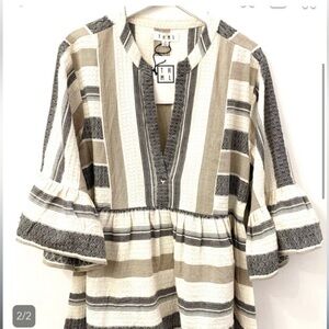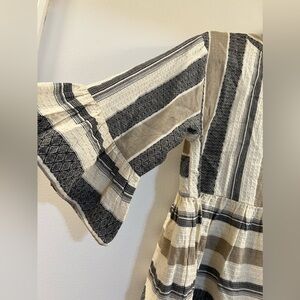 THML Beige and Gray Striped Top
