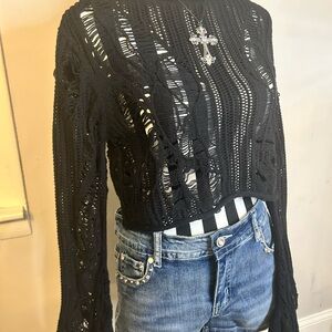 Sold ๐Killstar Black Distressed Knit Sweater XS