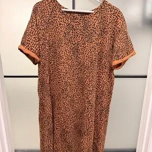 Daily Ritual Rust Leopard T-Shirt Dress XL | Casual Comfy