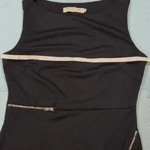 This elegant black dress features stylish gold zipper accents, perfect for any occasion. Its sleek design offers a sophisticated look. Please see pictures for measurements and details. 🌟If you like what you see please checkout my closet. Bundle and save on shipping. Happy Shopping 🛍 😉