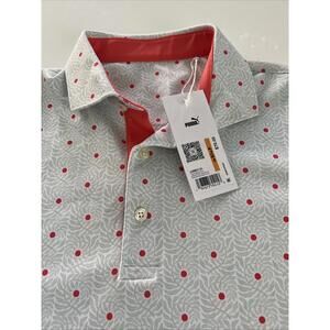The Puma Pique Botanic Golf Polo in PEACEFUL BLUE-PEACH FROST is a stylish and comfortable option for men looking for golf attire. Made with 95% Polyester Recycled and 5% Elastane, this short-sleeved polo features a button closure and a fabric wash that offers a medium level of comfort. The peaceful blue-peach frost color adds a vibrant touch to the overall design, making it a perfect choice for any golfer looking to stand out on the course. With its performance-driven design and PUMA Golf branding, this polo is sure to enhance your gaming experience.