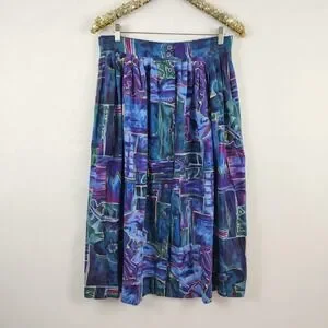 Tags: abstract print 90s art chic watercolor vibes bold blues jewel tones art teacher energy vintage pleated statement waist button front skirt gallery core retro eclectic indigo dreams boho intellectual colorblock aesthetic painterly pattern soft grunge feminine modernist muse expressive fashion creative classic museum date core