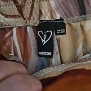 Stylish wide leg pants with a bold leaf print. Features autumn-inspired colors. Perfect for a chic look. I dont see a martial tag but its super soft and flowy. perfect for any occasion. can be worn for a wedding or beach. absolutely beautiful in person.