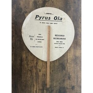 This is a rare Pyrus Ola advertising Ochiwa hand fan from the 70's, featuring a vintage Geisha design. It is a unique piece of merchandise and memorabilia for collectors of advertising and fans alike. Please review pictures for self satisfaction. As is. No returns accepted.