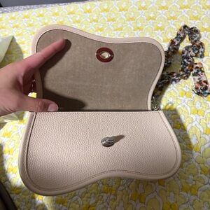 Elevate your style with this chic cream shoulder bag. Featuring a vibrant multicolor chain strap, this bag adds a pop of color to any outfit. Perfect for any occasion.