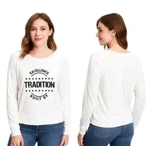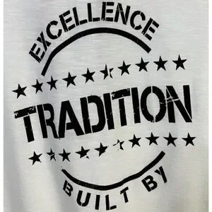 - Graphic print 'Excellence Tradition Built By' with stars