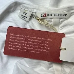 Cutter & Buck Knit Top S White Graphic Long Sleeve Athleisure Sporty Comfort NEW