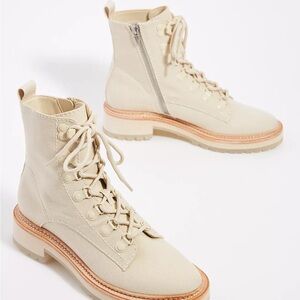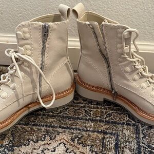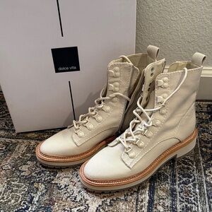Chic and versatile lace-up boots by Dolce Vita. Features a stylish off-white hue. Ideal for any wardrobe.