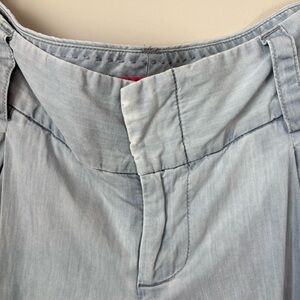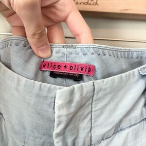 Alice + Olivia tailored pants in a light blue wash.