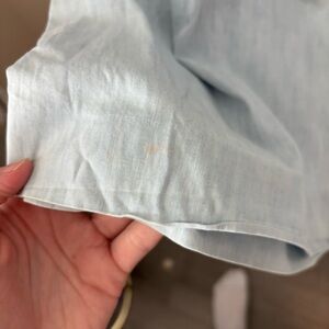 Minor faint discoloration near hem (shown in photos)