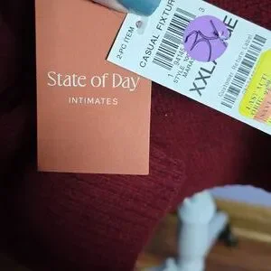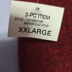 Stay cozy and stylish with this elegant red knit pants and sweater set. Perfect for any occasion, this set offers comfort and a chic look. Wide leg pants with pockets.