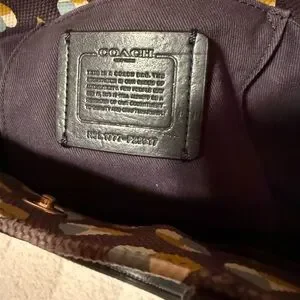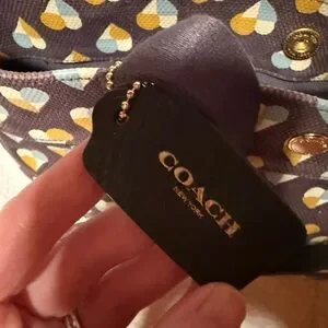 Stylish Coach tote with heart design. yellow and light blue hearts. Perfect for everyday use. Canvas material