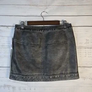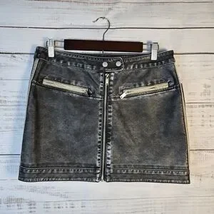 NWT SO Vintage Black Style Faux Leather Zip Front Mini Skirt Size 13 Juniors
