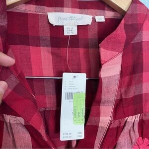 Anthropologie Forever That Girl Aliyah Embroidered Plaid Buttondown Red Flower M