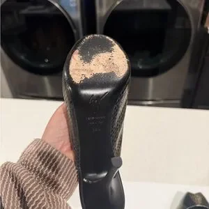 Giuseppe Zanotti Gold Snake Print Peep Toe Slingback Heels