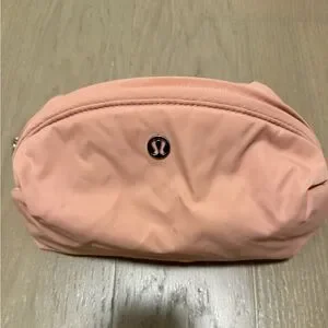 Puffy lululemon bag in a soft peach hue. Ideal for organizing cosmetics. Sleek and stylish design.
