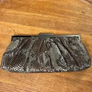 Women’s Olga Berg snakeskin print brown/cream/ black tone clutch/ shoulder bag.