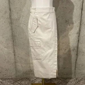 Future Collective cargo midi skirt brand new with tags featuring structured utility pocket detailing and clean minimalist silhouette. A versatile neutral wardrobe staple perfect for capsule styling or elevated casual looks.