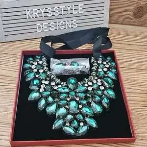 Emerald Green Statement Necklace And Earrings Fashion Jewlery Costume