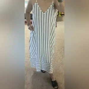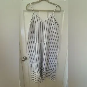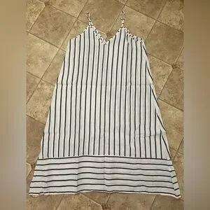 Terzo Millennio 100% Linen Striped Dress in size medium. This lightweight, breathable dress features a flattering vertical black-and-white stripe design that elongates the silhouette and creates an effortlessly chic look. Made from 100% linen, it’s perfect for warm weather, vacations, brunch, or an easy everyday outfit. Worn only a couple of times and in good condition. Flowy, comfortable, and easy to style with sandals for a relaxed vibe or dressed up with wedges and gold jewelry.