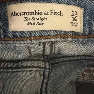 Abercrombie & Fitch classic 90s straight fit in a medium wash. Features a mid rise that is fitted at the waist through the seat to show off your best butt. Slightly eases at the thigh into a true full-length, straight leg shape. Made from our Vintage Comfort Stretch fabric with structure and slight stretch. This jean was designed to hit at the top of the shoe. Great condition looks new! Size 33/16R