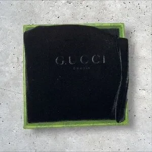 Presented in its original green Gucci box with a velvet protective pouch, this item was a luxury gift-with-purchase, not available for retail sale. A stunning addition to any vanity or handbag collection.