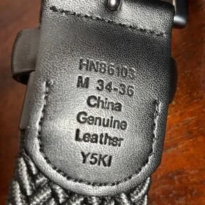 Original Penguin Mens Braided Elastic Web Belt Black Grey Leather Trim HN86103 M