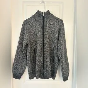 YeoKou Men’s Gray Full-Zip Sweater Jacket with Fleece Lining – Size Small