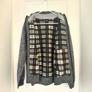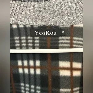 YeoKou men’s gray and black marled knit full-zip sweater jacket with a cozy plaid fleece lining. Features front pockets, ribbed cuffs and hem, and a high collar for added warmth. A great casual outer layer for cool weather.
