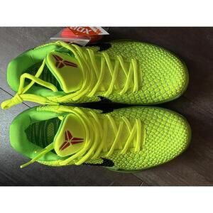 Up for sale is a brand new pair of Nike Kobe 6 Protro “Grinch” (2020 release), style code CW2190-300. This iconic holiday colorway features the signature green scaled upper, black Swoosh, and translucent outsole with Kobe sheath logo.