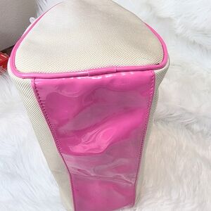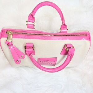 Chic and stylish, this Victoria's Secret bag features a vibrant pink and cream design. Perfect for adding a pop of color to any outfit.