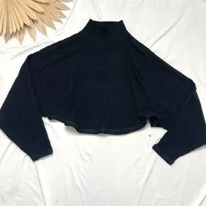 Anthropologie Pilcro Black Cozy Ribbed Turtleneck Batwing Pullover Top