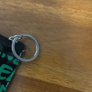 Stylish pouch with 'Ireland' print. Features a keyring attachment. Perfect for travel or daily use.